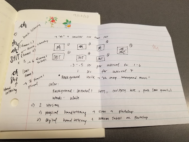 At first, I wasn't planning on making a GIF (is it pronounce gif or gif?). I wanted to make a video with 3 different lettering styles for "oh" and "shit". But as I was working on it, I felt like it was too much so I stuck with 1 lettering style for each word and decided to turn it into a gif.